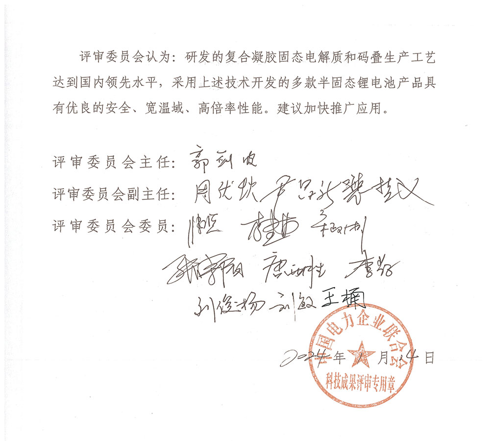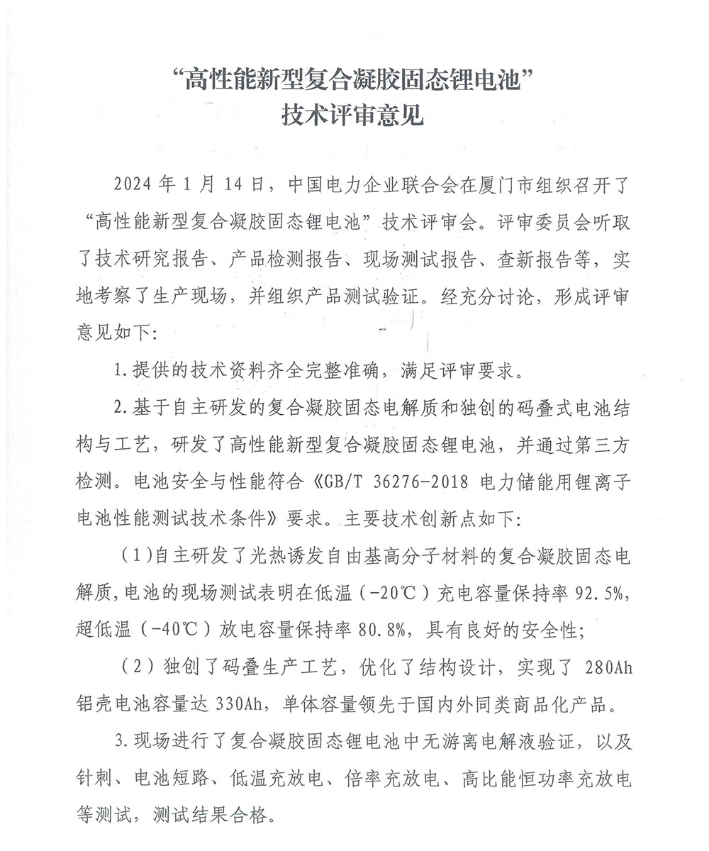 喜报 | 高性能新型复合凝胶固态锂电池技术通过“国内领先”专项技术评审