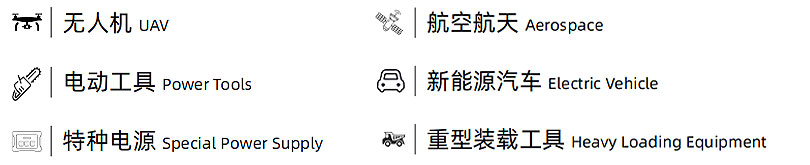 可广泛应用无人机、电动工具、特种电源、航空航天、新能源汽车、重型装载工具等领域。