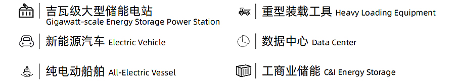 It can be widely applied to Gigawatt-scale Energy Storage Power Station, C&I Energy Storage, Electric Vehicle, Heavy Loading Equipment and Data Fields such as Center and All-Electric Vessel.