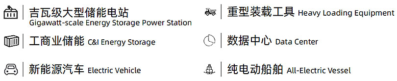 It can be widely applied to Gigawatt-scale Energy Storage Power Station, C&I Energy Storage, Electric Vehicle, Heavy Loading Equipment and Data Fields such as Center and All-Electric Vessel.