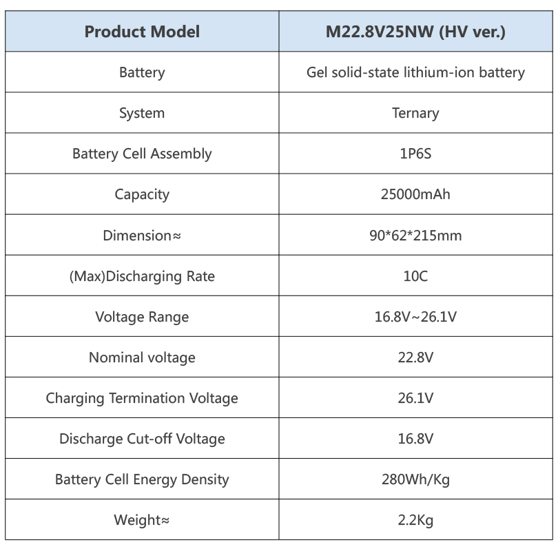 · High energy density, ≥ 280 Wh/kg