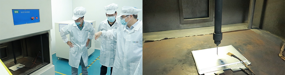 Accompanied by the leaders of NGDE, the visiting guests first visited the production workshop of gel solid-state lithium batteries, learning about the main production processes and manufacturing procedures of gel solid-state lithium batteries. They also took samples of the products on the spot and conducted a full-charge needle-puncture safety test verification in the NGDE safety laboratory. The sampled products did not smoke or catch fire during the needle-puncture process We jointly witnessed the high safety performance of gel solid-state lithium battery products.