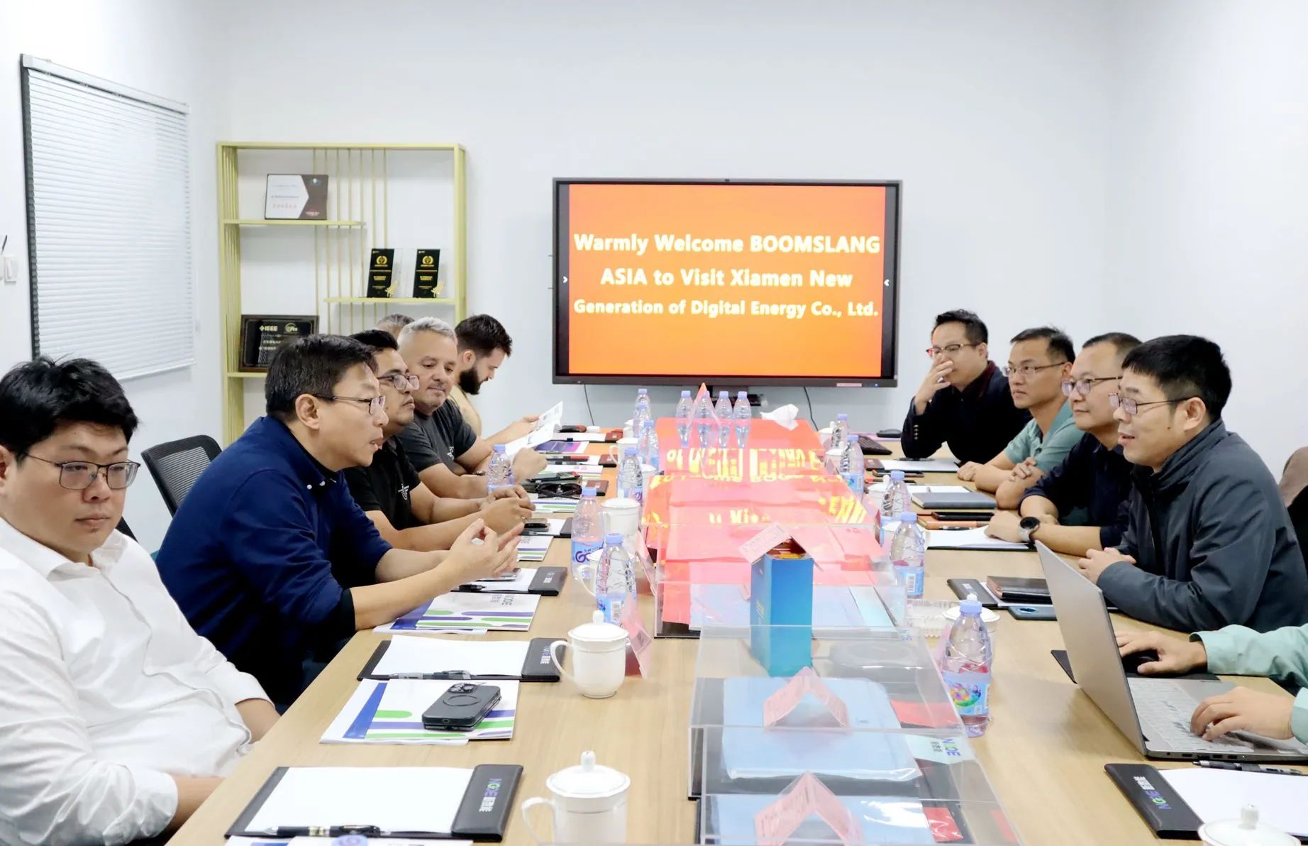 On the afternoon of November 27th, Xiamen New Digital Energy Power Technology Co.,Ltd (referred to as "NGDE") and its international trade strategic partner, Xiamen Shanhai Zhixin Technology Co., LTD. (referred to as "Shanhai Zhixin"), jointly received the BOOMSLANG foreign business delegation from Malaysia. The delegation came to NGDE especially for on-site inspection and cooperation negotiation. Li Bohu, the general manager of NGDE, Yao Mingyu, the marketing director, and other relevant leaders attended this reception event.